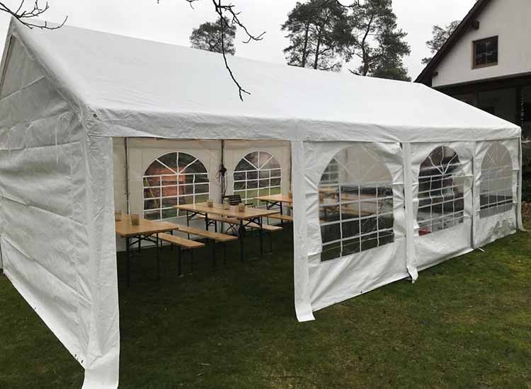 Die Mietpreise verstehen sich inmer für die gesamte Veranstaltung (max. 3 Tage) und sind keine Tagespreise. Unsere Zelte sind mit einer schweren PVC-Plane (500g/m²) ausgestattet und somit absolut Wasserdicht. Die Zelte werden von eigenem Personal windsicher auf Ihrer Veranstaltung auf-& abgebaut. Eine Beleuchtung ist optional erhältlich und wird ebenfalls beim Aufbau installiert.